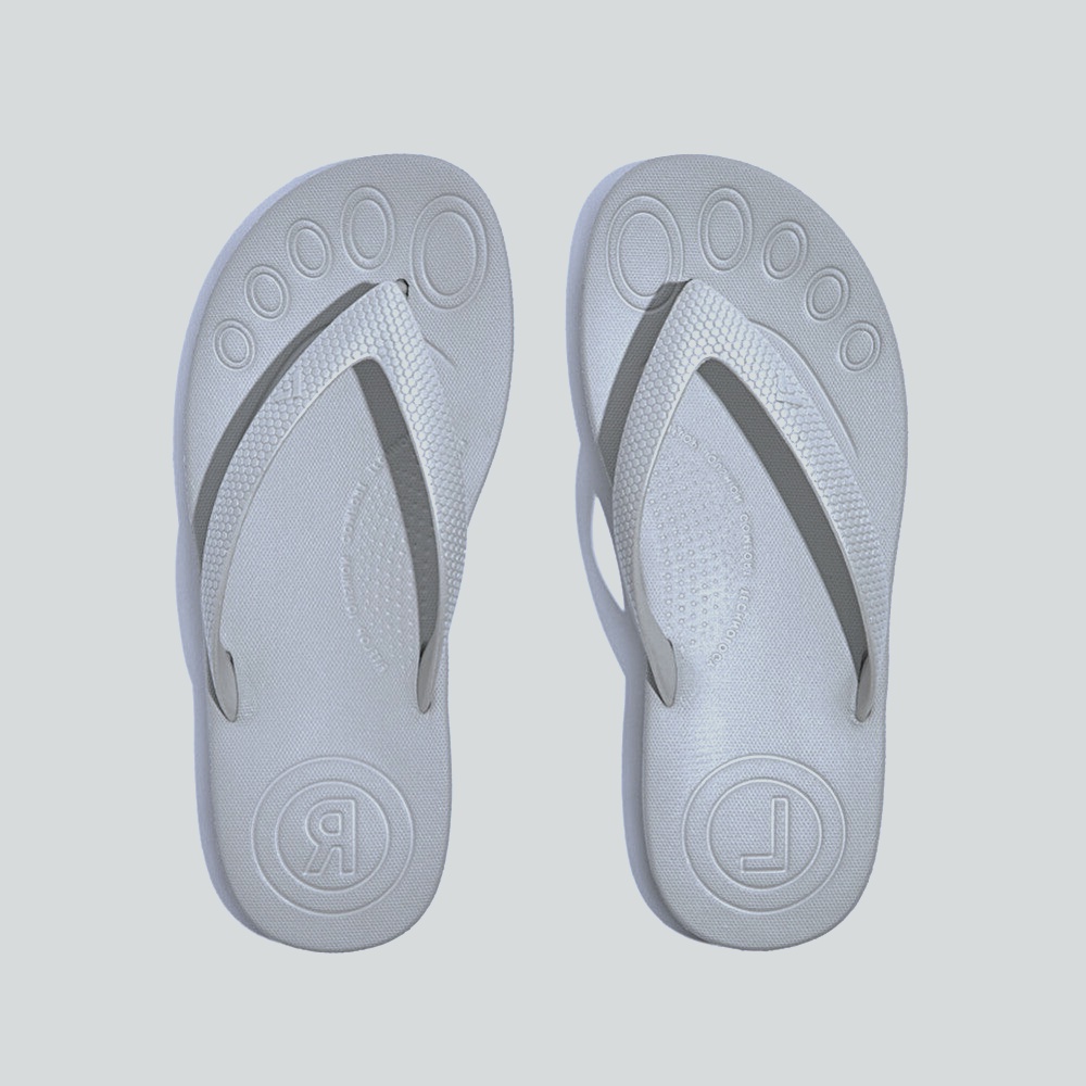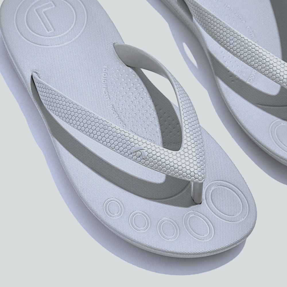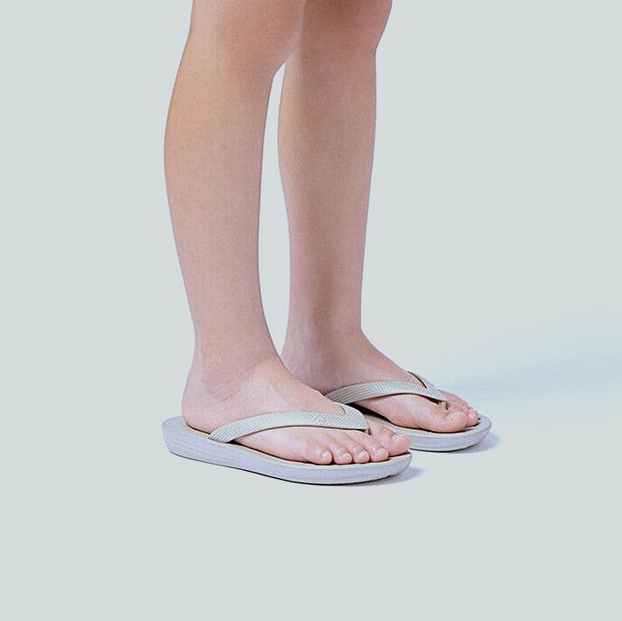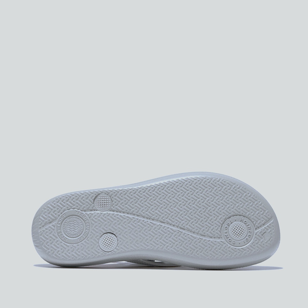 Slim V-strap flip-flops with a PebblePop strap and soft toe post. Ultra-light iQushion™ footbed cushions little feet with heel/forefoot “pillows” and natural arch support. Flexible, quick-dry build handles splash time; non-marking micro-grip outsole keeps steps steady. Finished in serene stone beige.