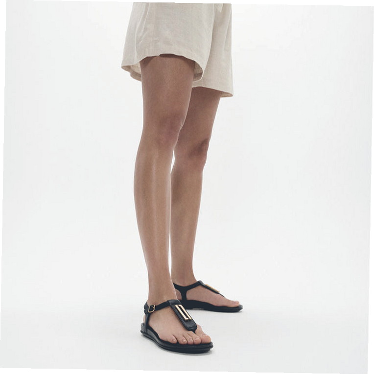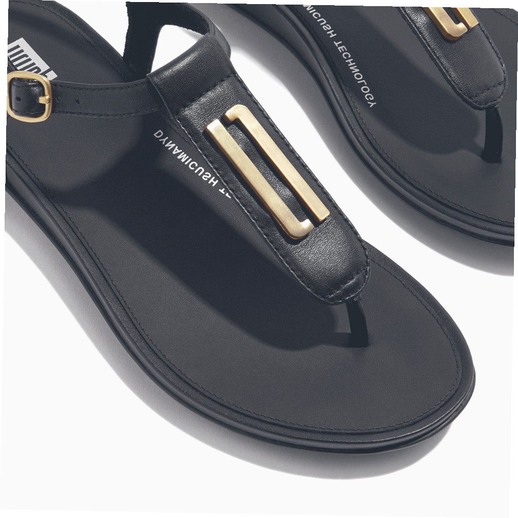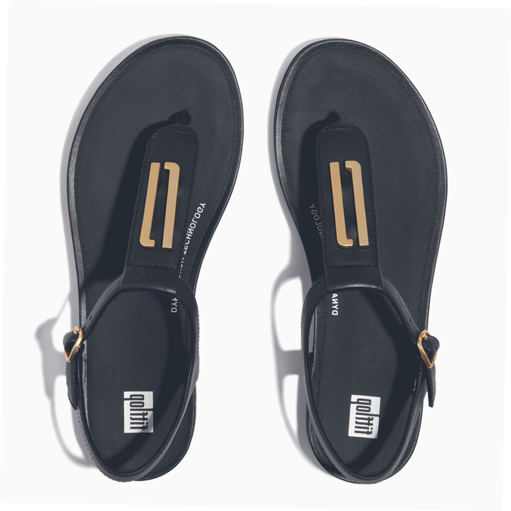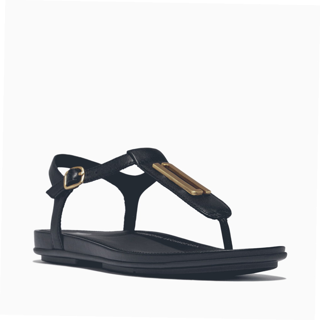 Women’s Easy Tread Gold-Trim T-Strap Leather Sandals