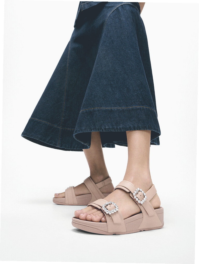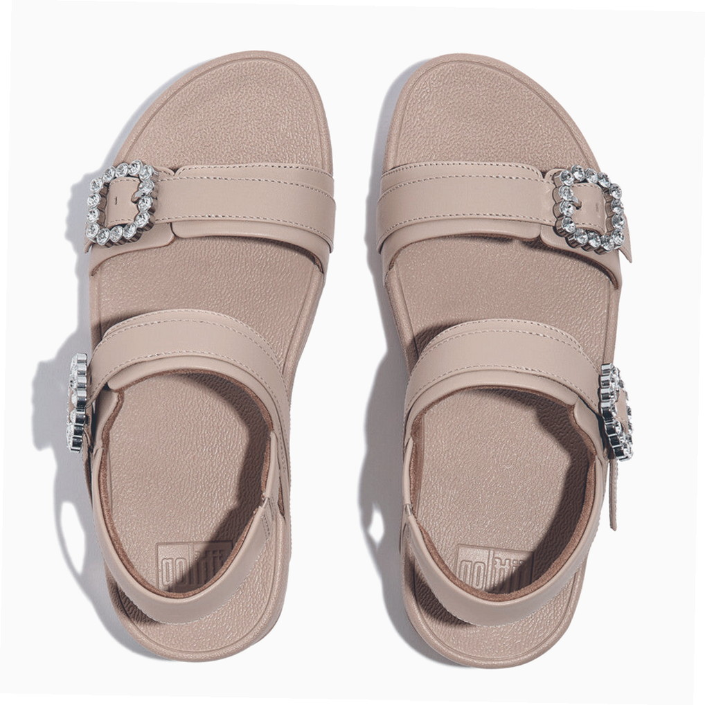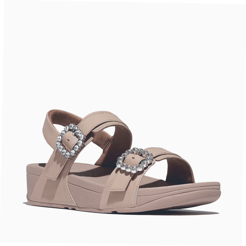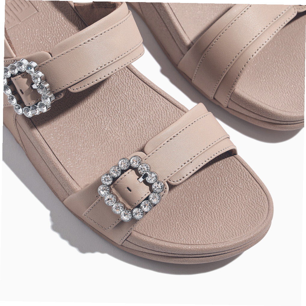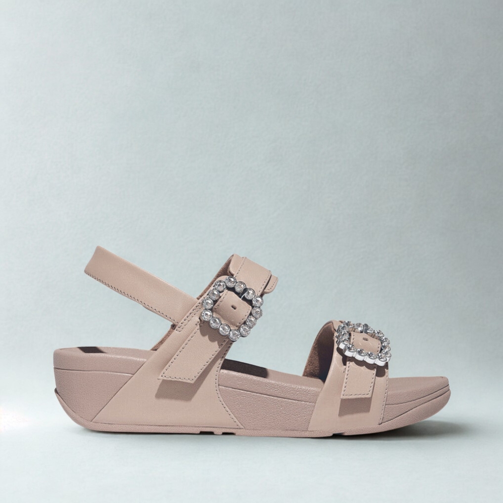 Women’s Lulu Crystal-Buckle Leather Back-Strap Sandals