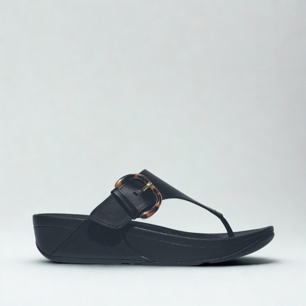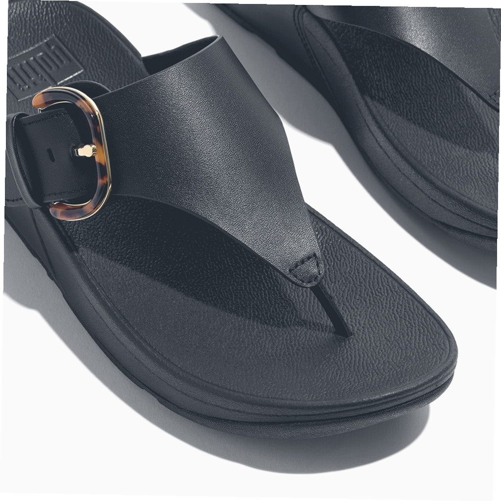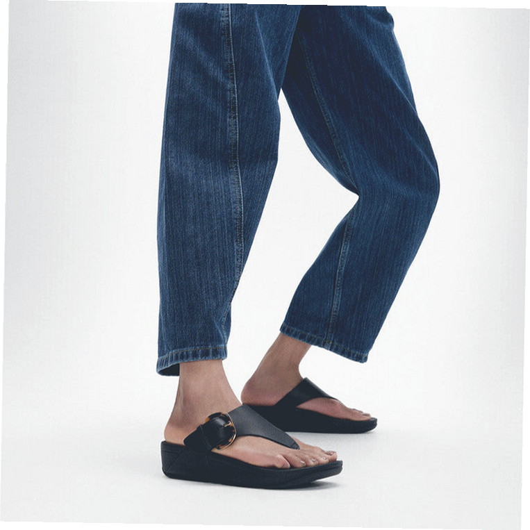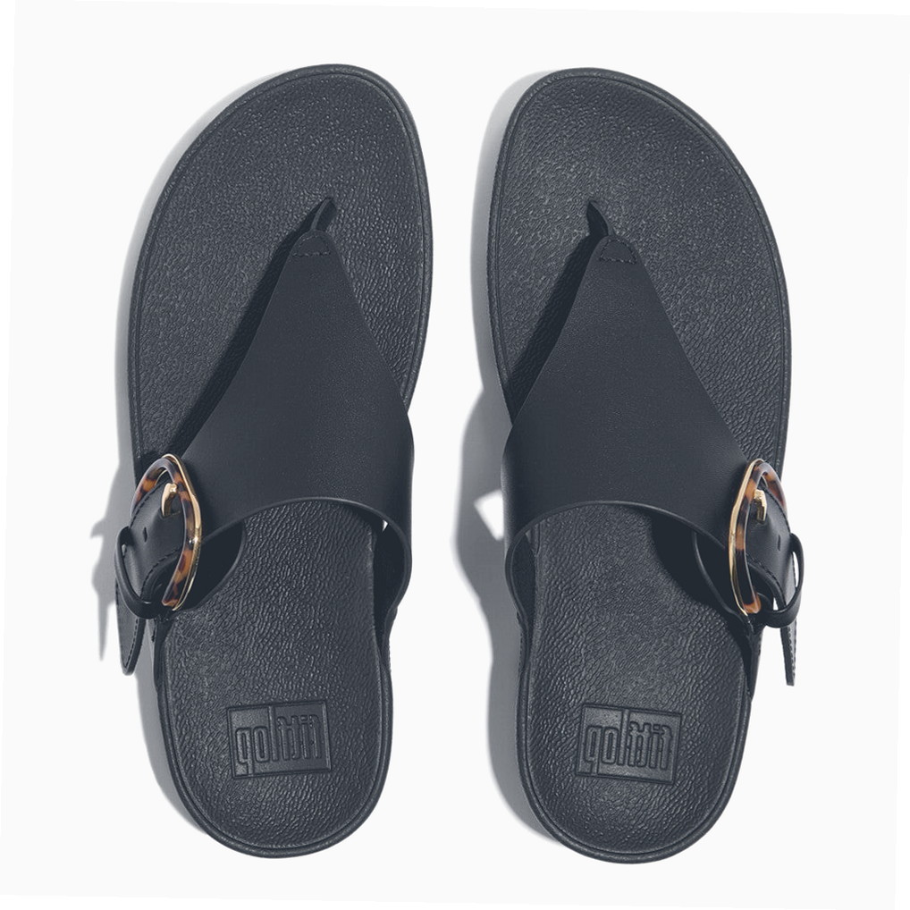 Women’s Lulu Leather Resin-Buckle Toe-Post Sandals – Black