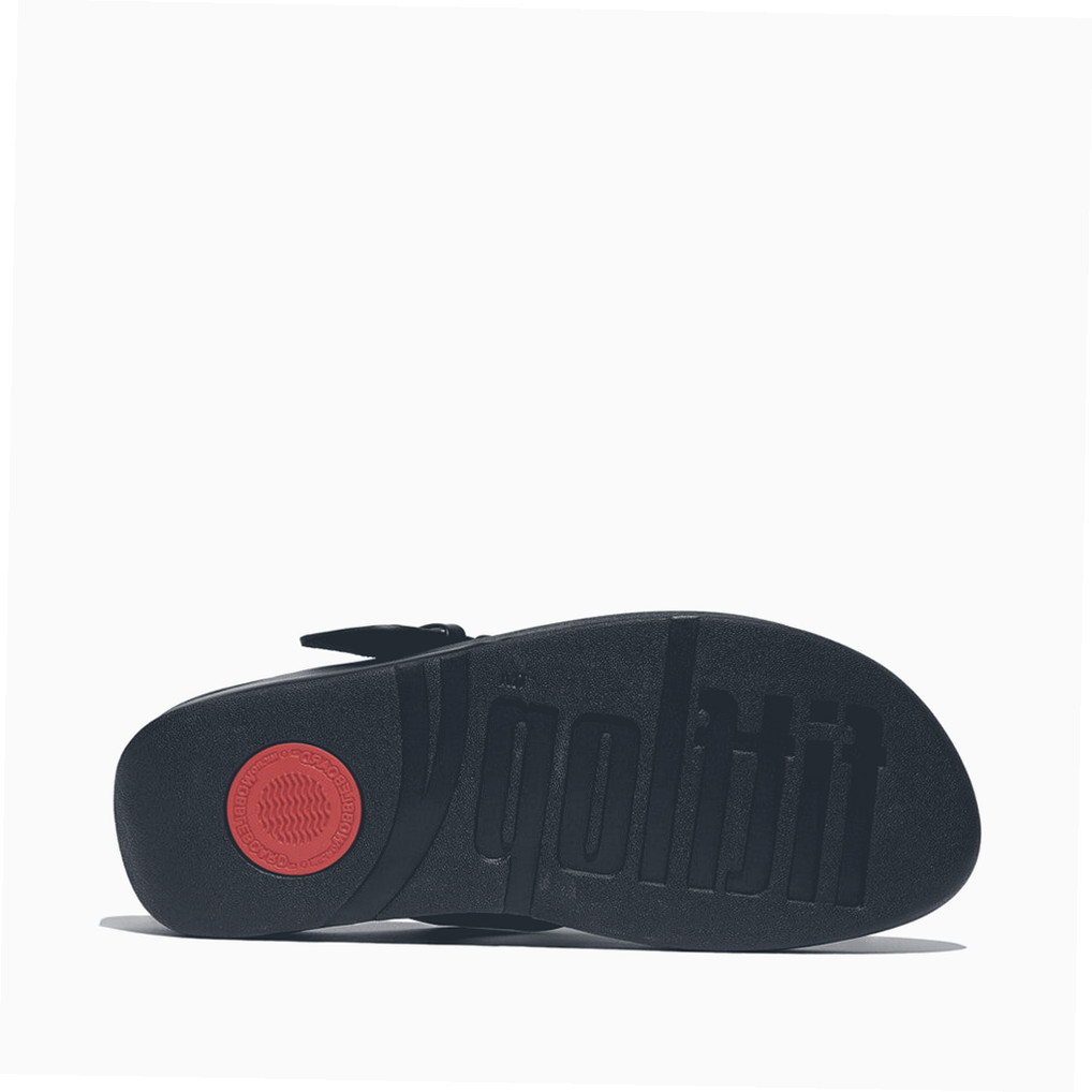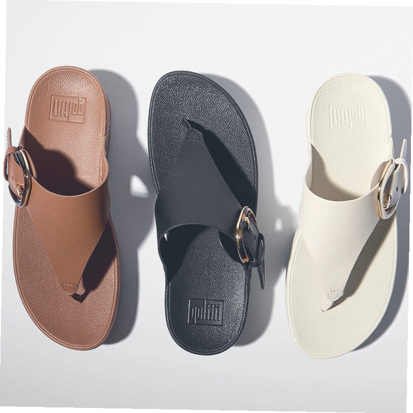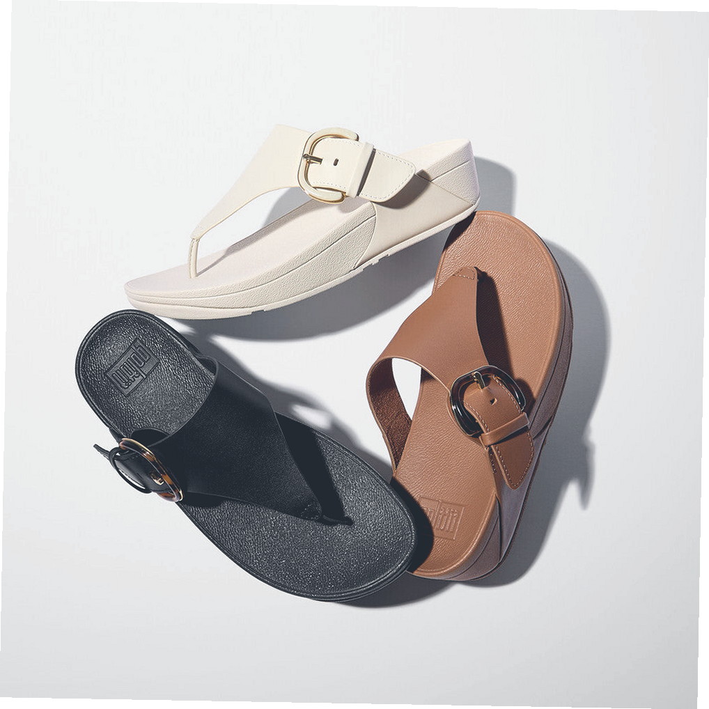 Women’s Lulu Leather Resin-Buckle Toe-Post Sandals – Black