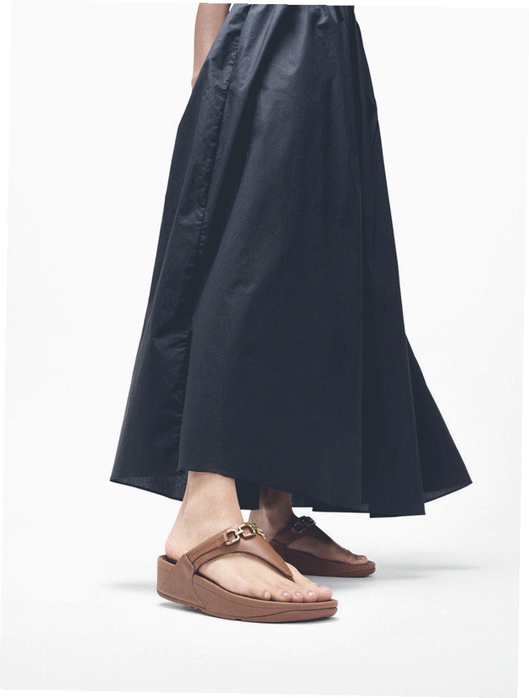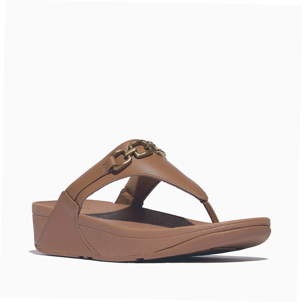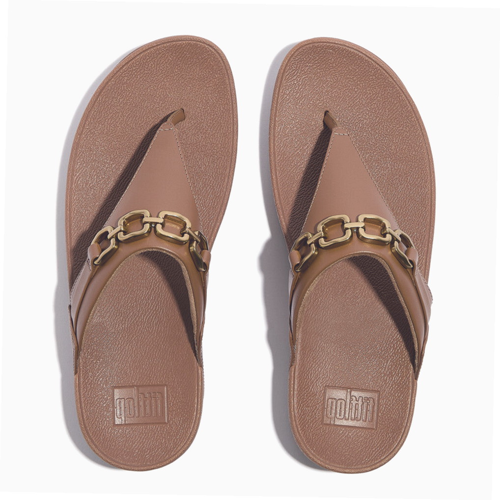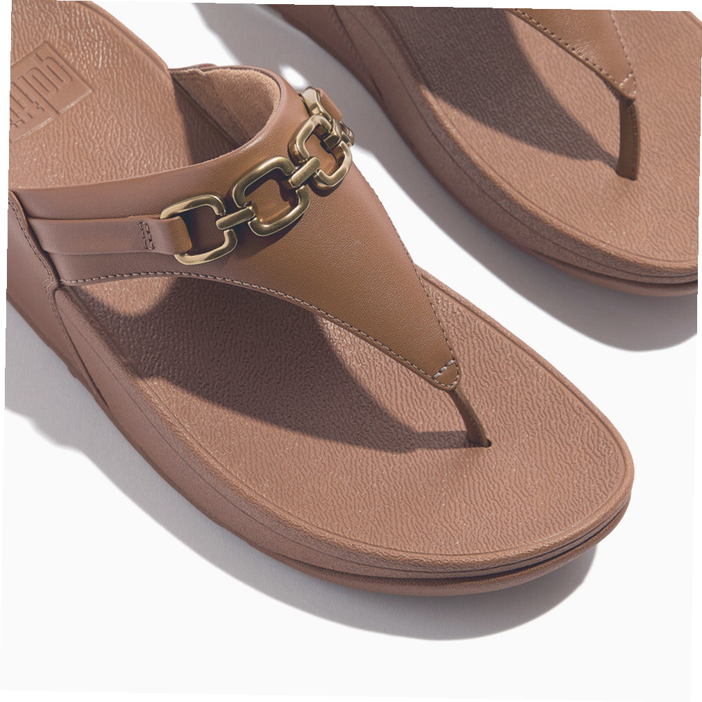 Women’s Lulu Square-Chain Leather Toe-Post Sandals
