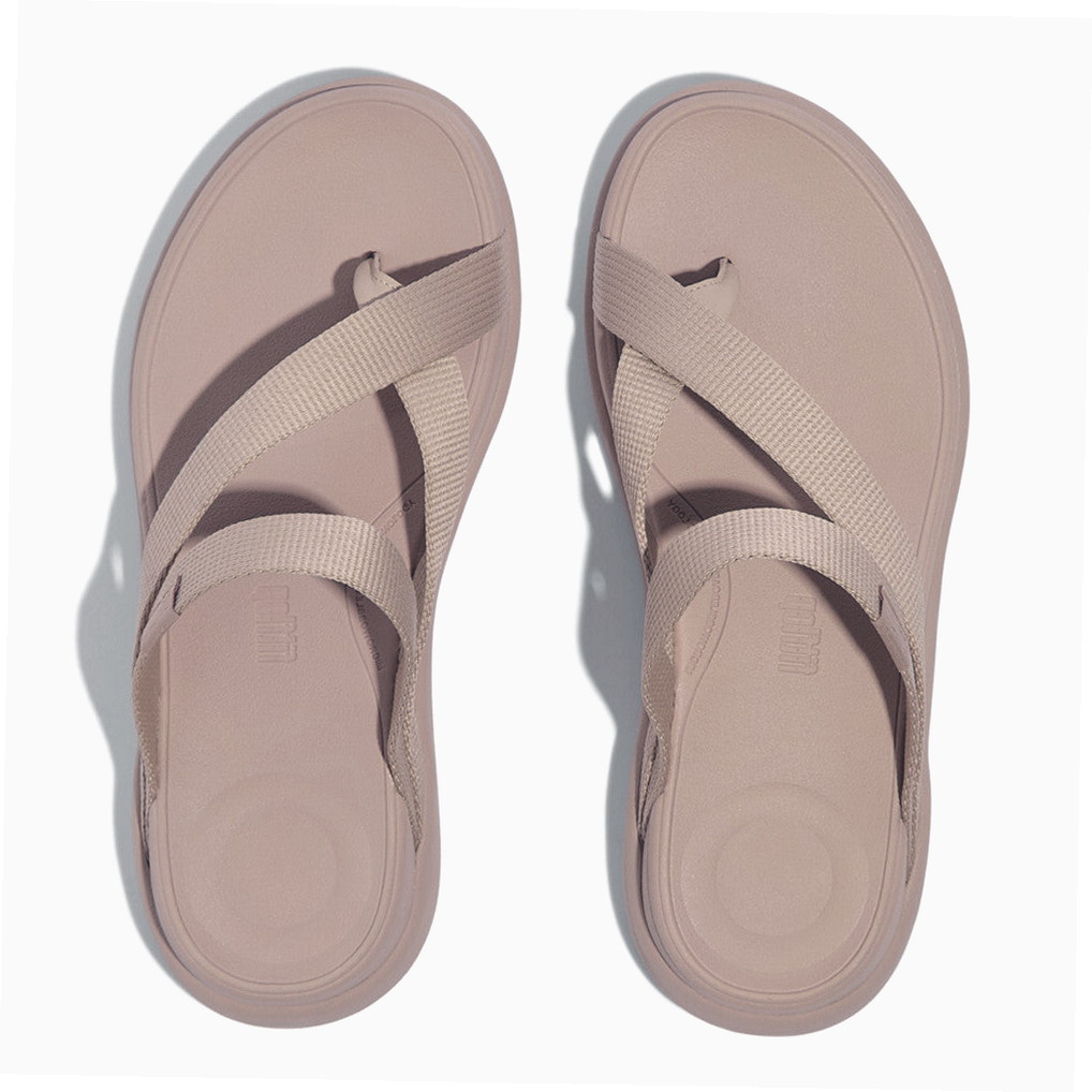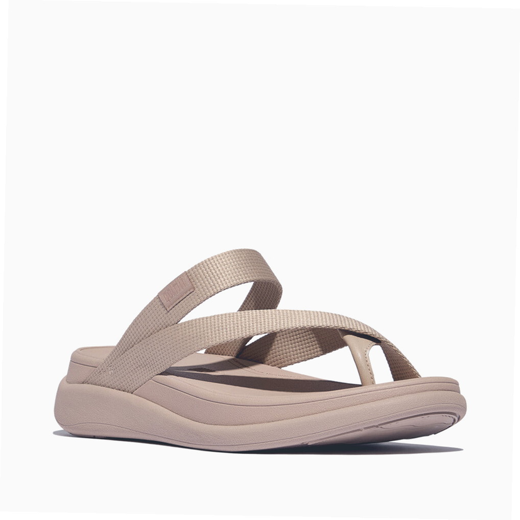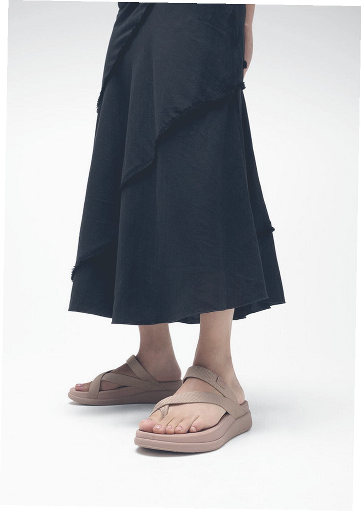Women’s Sand Whisper Webbing-Strap High-Sole Toe-Post Sandals – Beige